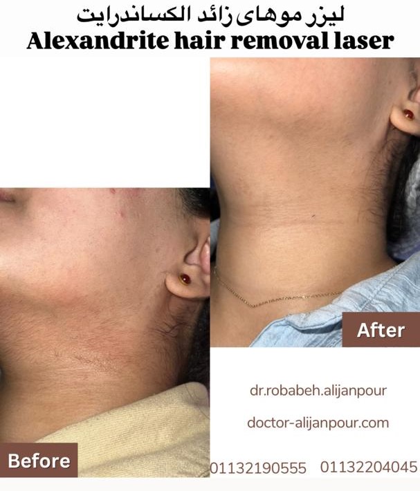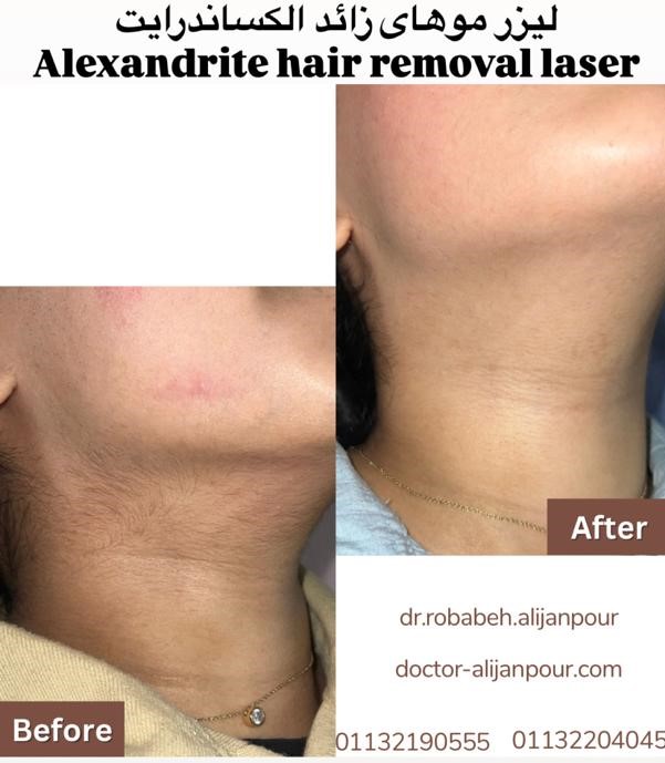 الکساندرایت لیزر برای درمان موهای زائد صورت تقریبا شش جلسه لازم هست که این بیمار در مرحله سوم درمان می باشد ،